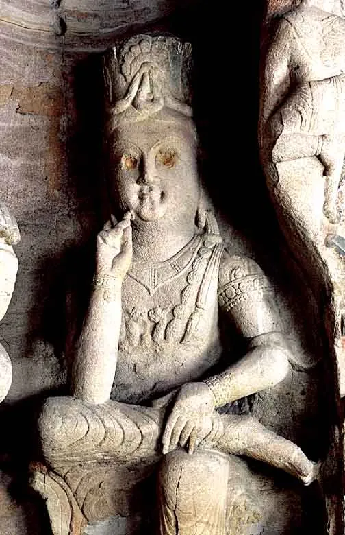 雲岡第7窟思惟菩薩,眼球已經脱落。