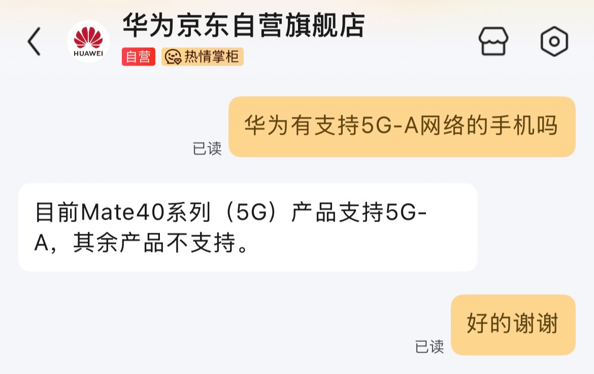6月5日,觀察者網從電商平台客服了解到,目前華為Mate40系列(5G)手機產品已支持5G-A,而其餘產品則不支持。