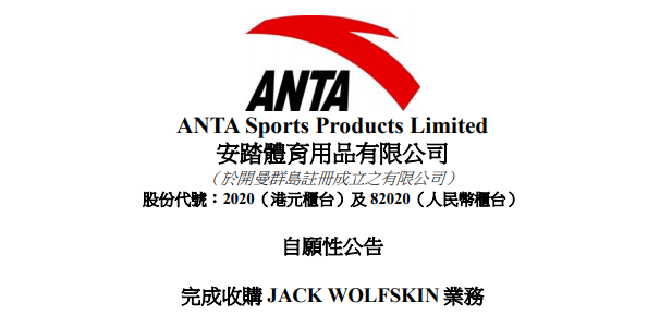 6月2日,中國運動服飾巨頭安踏集團(股票代碼:02020.HK)發佈公告,宣佈完成對德國專業户外品牌 Jack Wolfskin(狼爪)業務的收購。