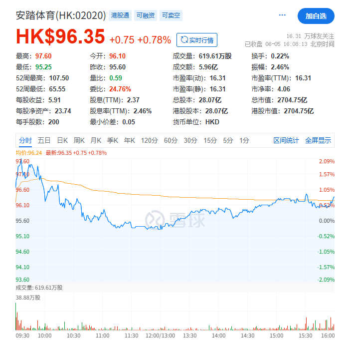 股價方面,截至6月5日收盤,安踏體育每股報96.35港元,最新市值為2704.75億港元。被稱為時代眼淚的狼爪,是否會翻身成為堪比始祖鳥的增長新引擎,還是繼續淪為業績拖累,市場將在不久後給出答案。