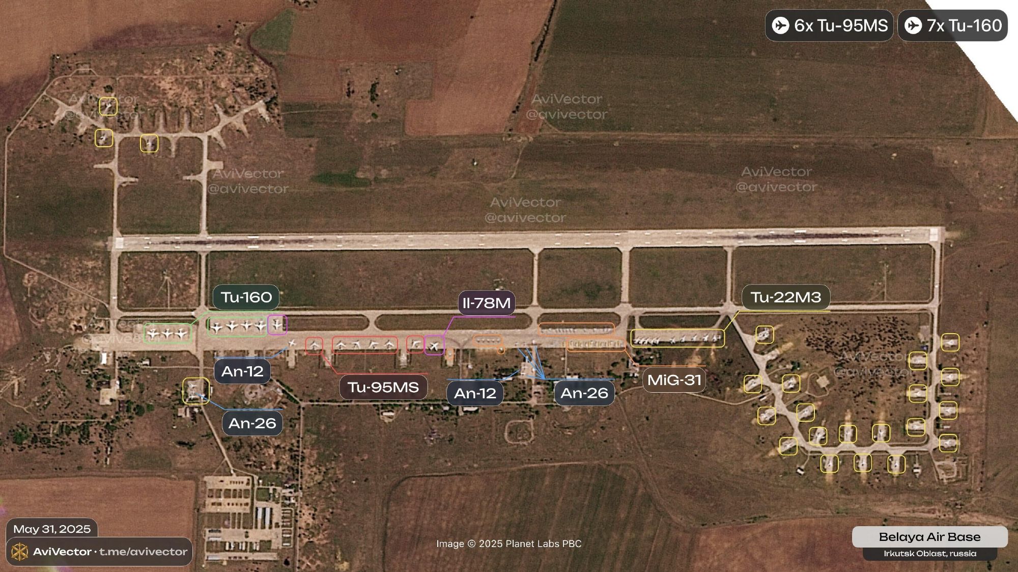 烏軍襲擊前後,俄羅斯伊爾庫茨克別列亞基地的軍機狀態