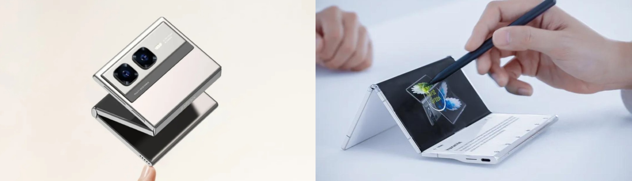 另外,今年2月,傳音旗下手機品牌Infinix推出了 ZERO系列迷你三摺疊概念手機,該設備採用三摺疊屏幕和雙鉸鏈設計,可垂直摺疊和展開。3月,傳音旗下品牌TECNO的三摺疊概念機PHANTOM ULTIMATE 2正式亮相,該機採用雙鉸鏈內外彎折Z形態設計,摺疊狀態下屏幕尺寸為6.48英寸,機身厚度僅有11毫米;展開後可以呈現10英寸大屏幕。