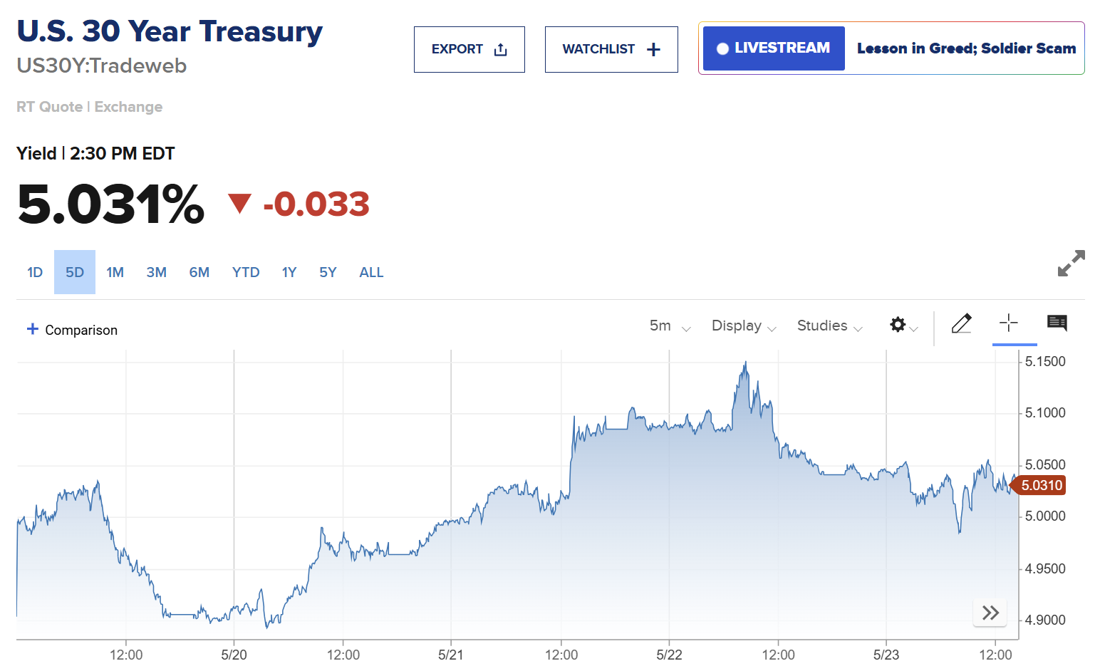 在這種混沌的環境下,美債短期內“暴雷”的風險並不高。這也是為什麼美國長期國債的收益率在穆迪降級後沒有出現劇烈波動,而美國股市也沒有因為升高的美債收益率而持續暴跌。