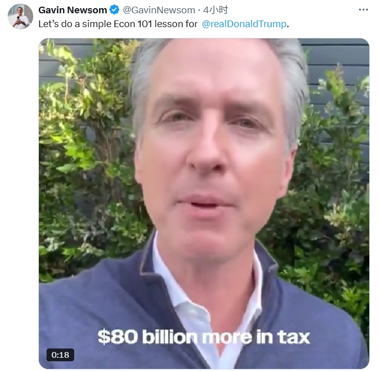 紐森隨後還發布了一則視頻,稱要給特朗普“上一堂簡單的經濟學入門課”。