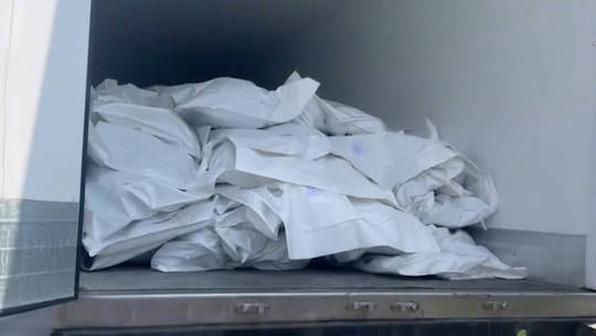 裝着烏克蘭陣亡士兵遺體的袋子。俄羅斯國防部