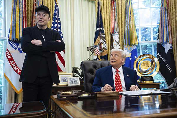 5月30日,白宮橢圓形辦公室,馬斯克和美國總統特朗普出席記者會。 視覺中國
