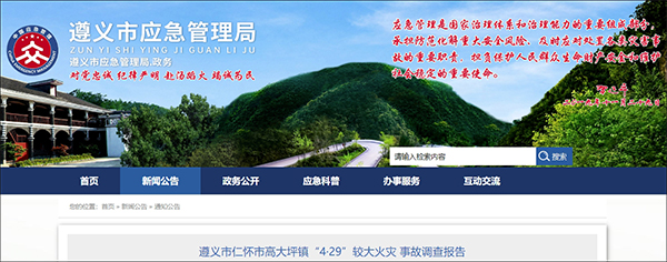 6月5日,貴州遵義市應急管理局網站發佈《遵義市仁懷市高大坪鎮“4·29”較大火災事故調查報告》。