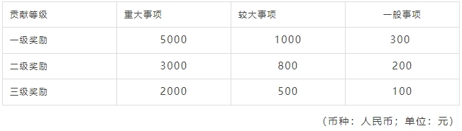 根據舉報人的貢獻程度,將獎勵等級分為以下三級:
