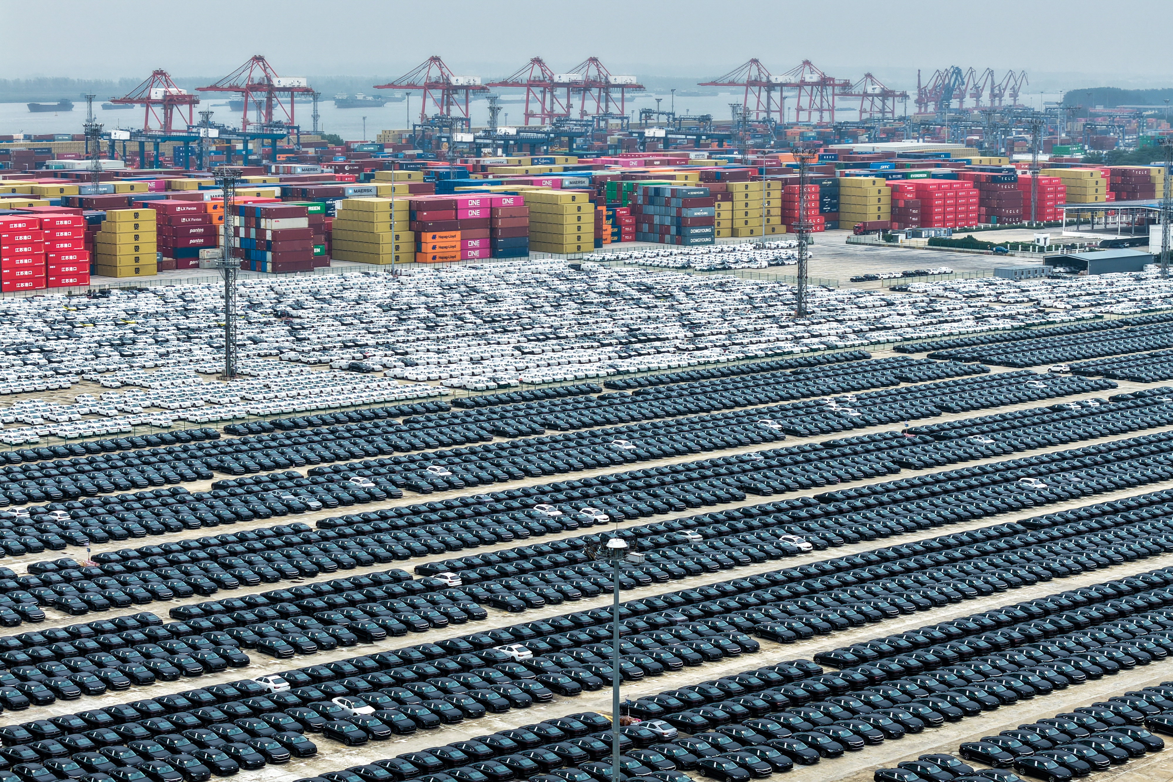6月9日,南京港整齊停放着待出口的汽車 視覺中國