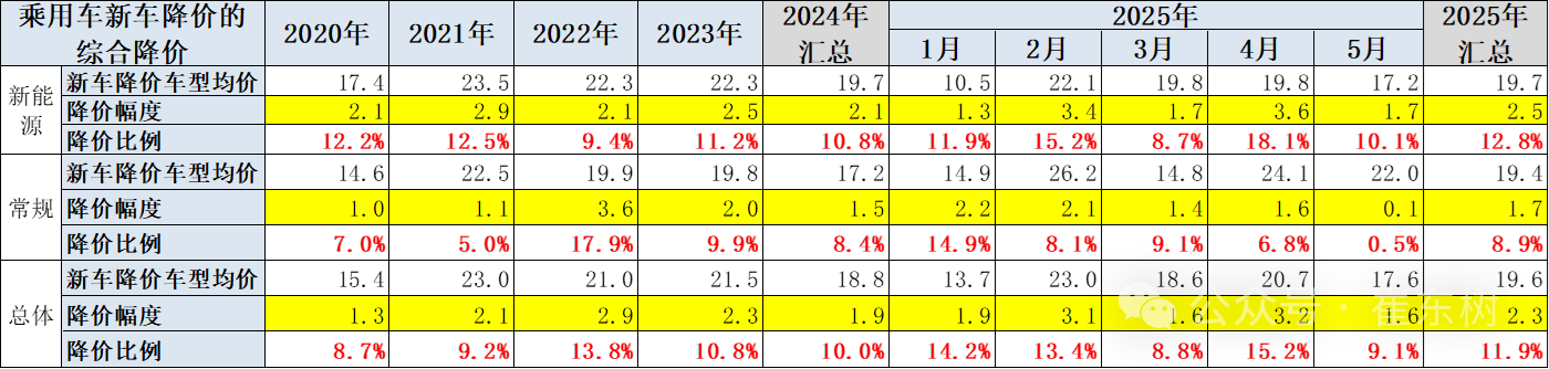 就降價力度而言,今年1—5月,新能源車新車降價車型的降價力度算術平均達到2.5萬元,降價力度達到12.8%;常規燃油車新車降價車型的降價力度算術平均達到1.7萬元,降價力度達到8.9%;總體乘用車市場新車降價車型的降價力度算術平均達到2.3萬元,降價力度達到11.9%。