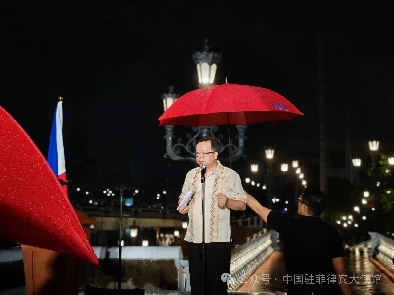 黃大使表示,瓊斯橋燈光煙火秀靈感來源於北京亮馬河亮化工程,將成為中菲民間交流合作又一典範。華人華僑為菲民族獨立解放和經濟社會發展作出了巨大貢獻,是菲多元社會當之無愧主人翁,理應得到充分認可和高度珍惜。中菲是搬不走的近鄰。值此建交50週年之際,期待雙方重温建交初心,順應民心民意,尋求合作而不是對抗,對話而不是衝突,推動雙邊關係早日重回健康穩定發展軌道。