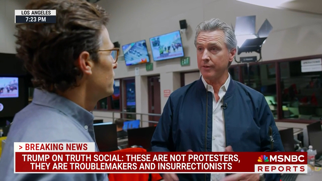 紐森8日晚接受MSNBC採訪 節目截圖