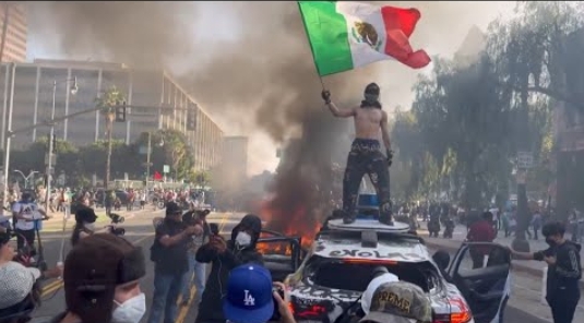 48小時內,大批蒙面抗議者聚集於唐人街、Compton與101高速路段,與警員對峙,高舉墨西哥國旗,投擲燃燒瓶。一邊是國民警衞隊荷槍實彈進入街頭,一邊是州長公開譴責聯邦“非法越權”。衝突迅速超越移民議題,演變為對合法性、身份認同、以及政治邊界的集體質問。