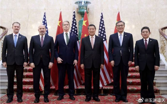 根據會議公佈的照片,可以看到,美方代表團主要成員包括美國財政部長貝森特、美國貿易代表格里爾和美國商務部長盧特尼克。