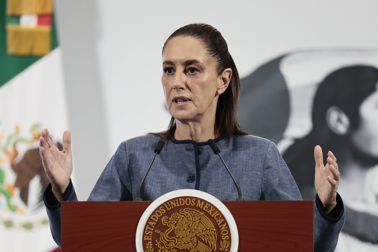 當地時間6月9日,墨西哥總統辛鮑姆召開新聞發佈會。 埃菲社
