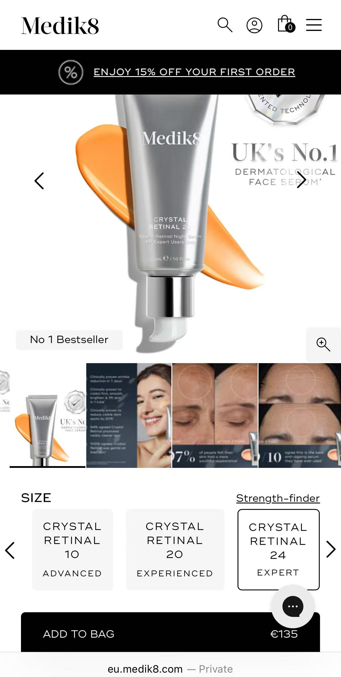 不過,Medik8被劃分到奢侈品部門也不無道理,品牌的拳頭產品Crystal Retinal(維生素A精華液)售價按護膚階段售價在56-135歐元之間,與Aesop的價格帶比較相似。