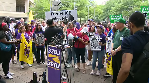 美國哥倫比亞廣播公司(CBS)稱,在紐約市的特朗普大廈等地,抗議者舉行了靜坐抗議活動。在曼哈頓下城,包括市議員在內的抗議者也舉行了集會,紐約市議會議長阿德里安娜·亞當斯(Adrienne Adams)發表講話,呼籲ICE停止針對非法移民的搜捕。