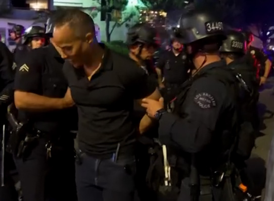 CNN稱,抗議者向警察投擲了煙花、石塊等物品,執法人員則發射橡皮子彈和閃光彈來驅散抗議人羣。飛行數據平台Flightradar24的數據還顯示,當地警方的直升機9日全天在抗議區上空盤旋。當地時間9日晚間,洛杉磯警察開始逮捕拒絕離開現場的抗議者。