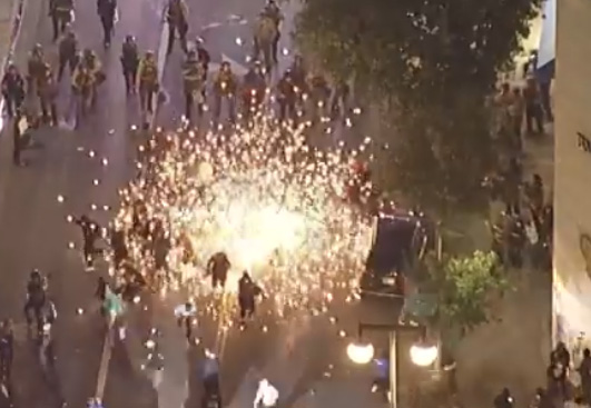 美國執法人員驅散洛杉磯抗議人羣 視頻截圖