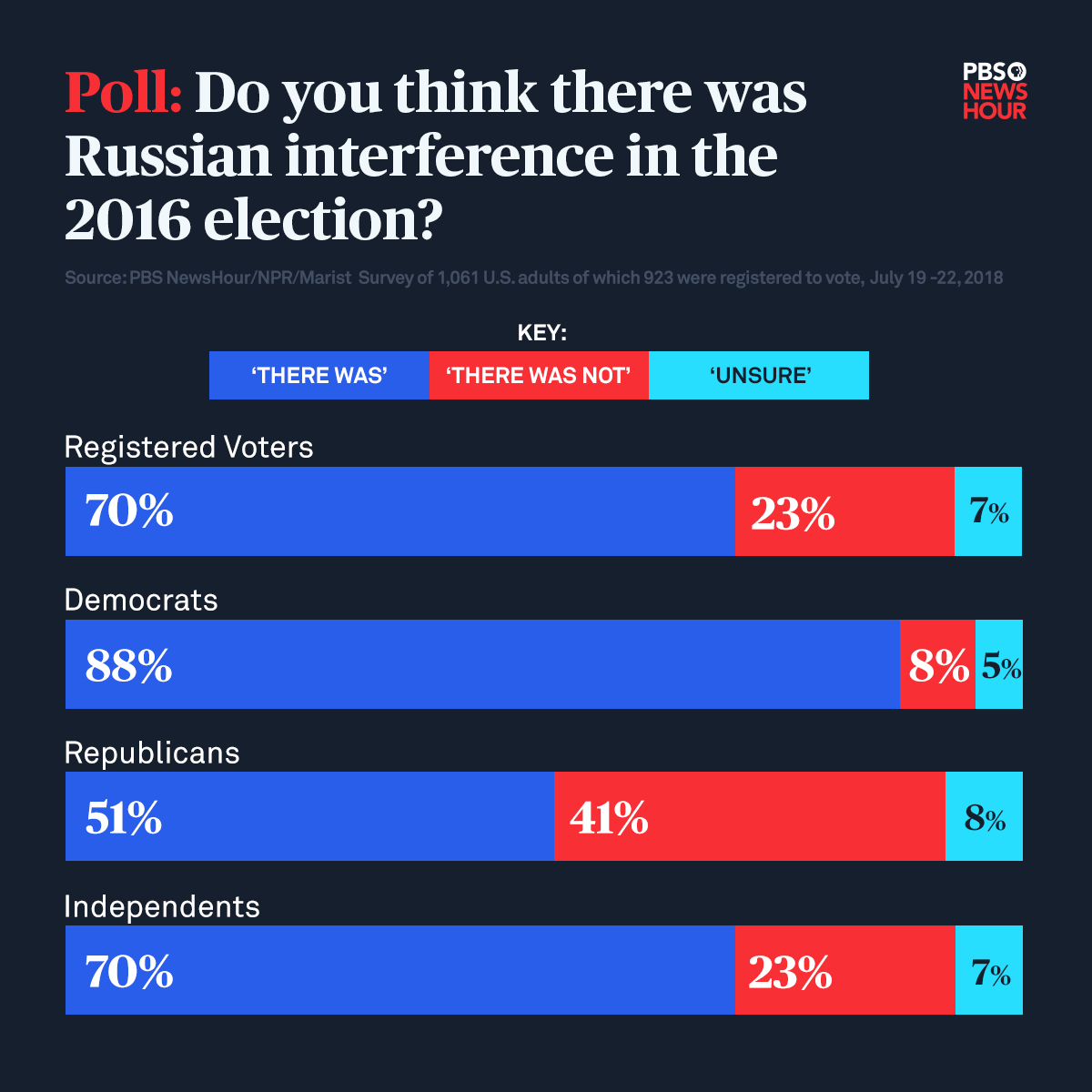 大選的陰謀論也是一樣。主流的民眾都相信2016年大選被俄羅斯干擾了,民主黨信的比共和黨多一些: