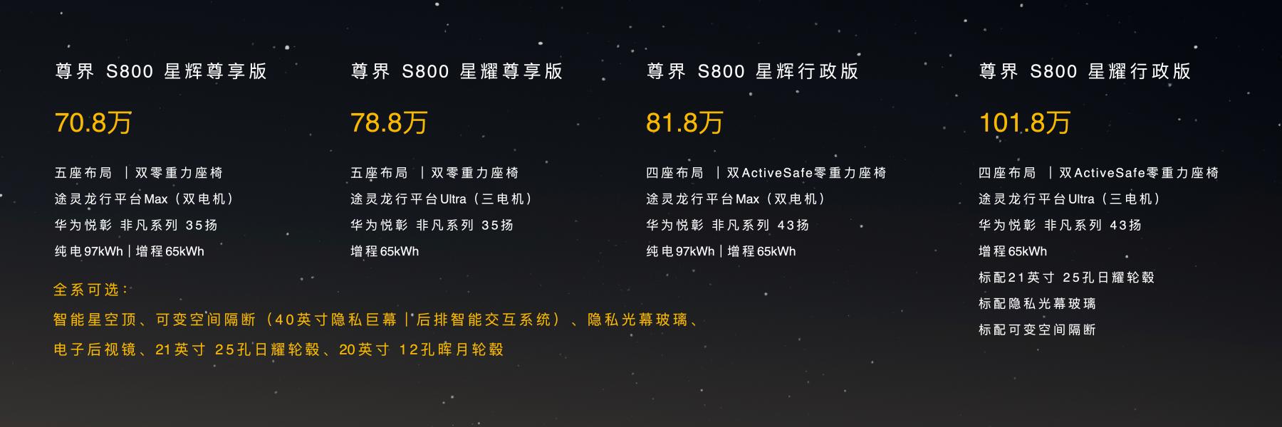 【文/觀察者網 劉懷文 編輯/高莘】近日,尊界S800正式上市,定位大型豪華行政轎車,可選純電、増程兩種動力形式,售價70.8萬—101.8萬元。