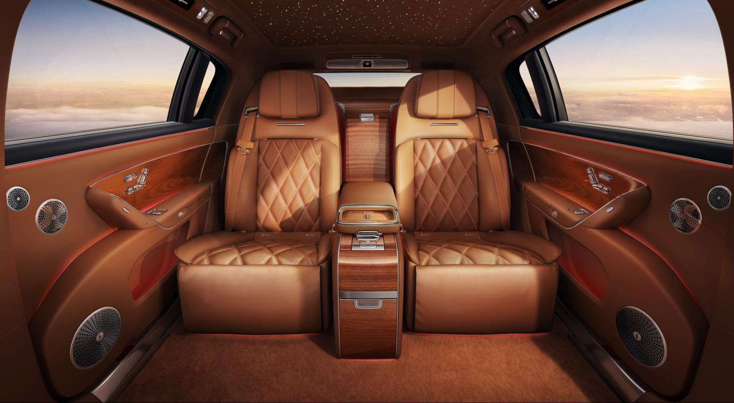 在材料工藝方面,水晶材料歷經數百道工序手工打磨,金屬件以1毫米鑄造精度、1300℃真空燒結而成。皮質軟包選用行業頂級小牛皮與麂皮絨,全粒面半苯胺無鉻鞣工藝,採用0.2-0.5毫米超細針腳縫製。實木飾板經人工嚴選對紋,山紋、直紋挑選率僅0.13%與0.4%,採用480小時高光工藝,賦予獨特質感。