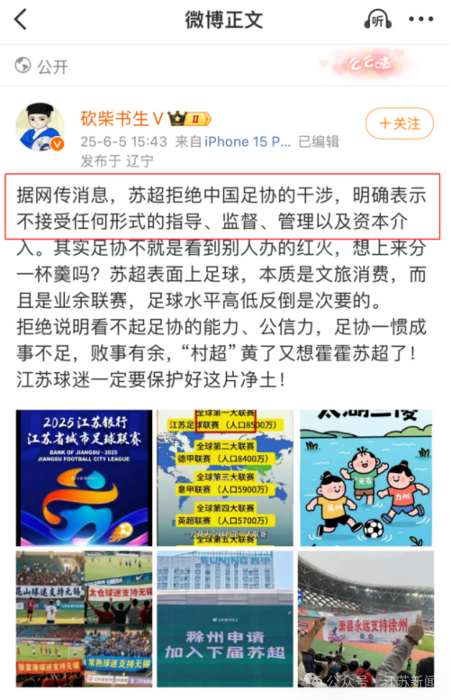 足協要來指導“蘇超”?謠言!