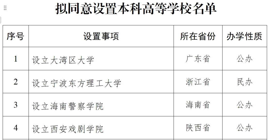 6月11日,教育部官網發佈《關於擬同意設置本科高等學校的公示》。其中,包括“設立西安戲劇學院”,學校位於陝西省,辦學性質為為公辦。