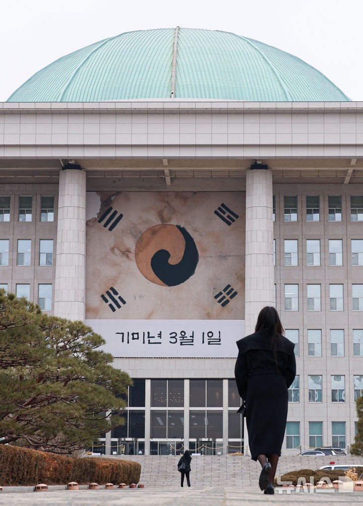 2025年3·1紀念日前夕,韓國國會掛起巨幅津寬寺太極旗,下書“己未年(暨1919年)三月一日”,追慕獨立先賢。