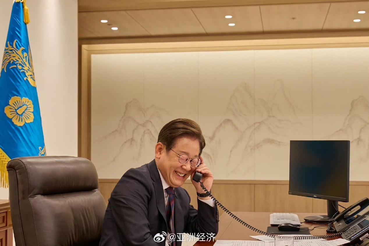韓國《亞洲經濟》發佈在中國社交媒體平台微博的“李在明與中國元首通電話照片”