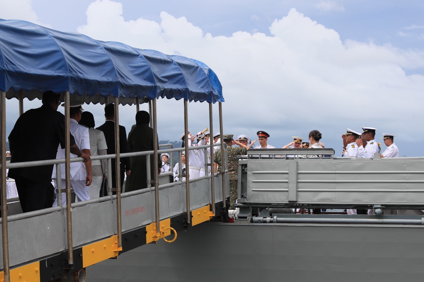 小帥哥説下一站可能停靠中國。我告訴他,他們在中國會受到很熱烈的歡迎。他很高興,也很期待。不過他對蘭卡威無感,只想執勤結束,快快回到自己還在港內海上的艦上,就不用這樣軍裝筆挺地曬太陽了。