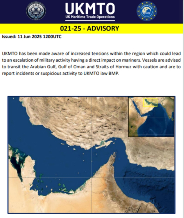 當天早些時候,英國海事貿易組織(UKMTO)警告稱,已注意到中東緊張局勢加劇,“這可能導致軍事活動升級”,可能影響航運,建議船隻在經過波斯灣、阿曼灣和霍爾木茲海峽時要小心。彭博社指出,中東的航運經常存在風險,但作為英國海軍和商業航運之間聯絡人的UKMTO很少發出此類警告。