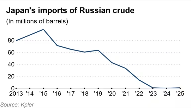 日本曾經長期是俄羅斯原油的主要買家之一,也是“薩哈林混合油”的主要客户。俄烏衝突爆發後,日本與歐美一致對俄羅斯實施經濟制裁。2023年1月以來,日本未再進口過任何俄羅斯原油,儘管美國和歐盟都考慮到日本需要保障其能源安全,豁免日本可以進口俄羅斯原油。