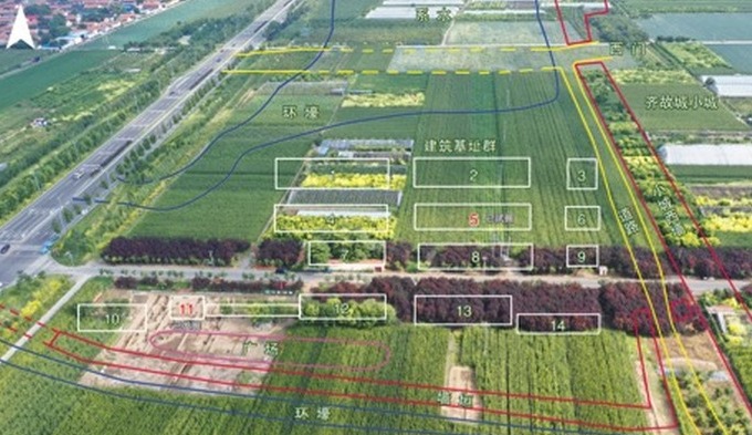 位於山東淄博市臨淄區齊都鎮小徐村西的齊故城小城西門外建築基址羣,被基本認定為稷下學宮遺址。圖為建築基址平面圖 北京日報