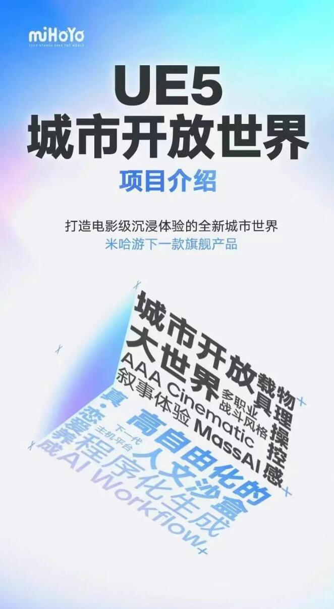 6月11日,上海遊戲公司米哈遊對外發布了最新一輪招聘廣告,其中曝光了“旗艦產品”,一個神秘的“UE5城市開放世界”項目。