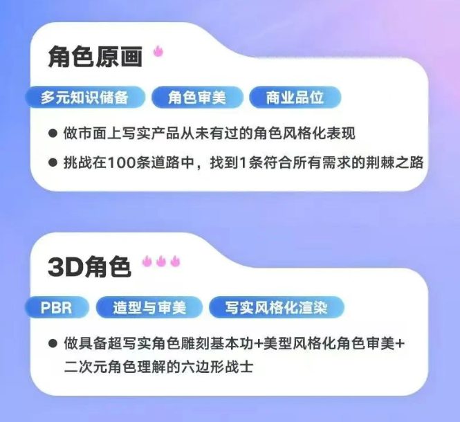 美術風格方面,該旗艦項目有意探索不同的藝術方向,但又並非傳統理解上的歐美3A大作寫實風格。其怪物原畫師崗位,要求創作的怪物具備高級3A質感外殼,且符合真實物理認知。在場景原畫師崗位,應具備現實感、故事感以及影視級演出的內容表達。尤其是在3D角色崗位,要求超寫實角色雕刻基本功和美型風格化角色審美的同時,還需要有“二次元角色理解”。