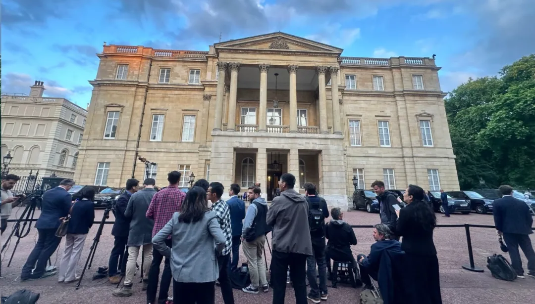 6月9日至10日,中美經貿中方牽頭人、國務院副總理何立峯與美方牽頭人、美國財政部長貝森特及商務部長盧特尼克、貿易代表格里爾在英國倫敦舉行中美經貿磋商機制首次會議。在會議舉辦地倫敦蘭卡斯特宮外守候的媒體記者。中新網