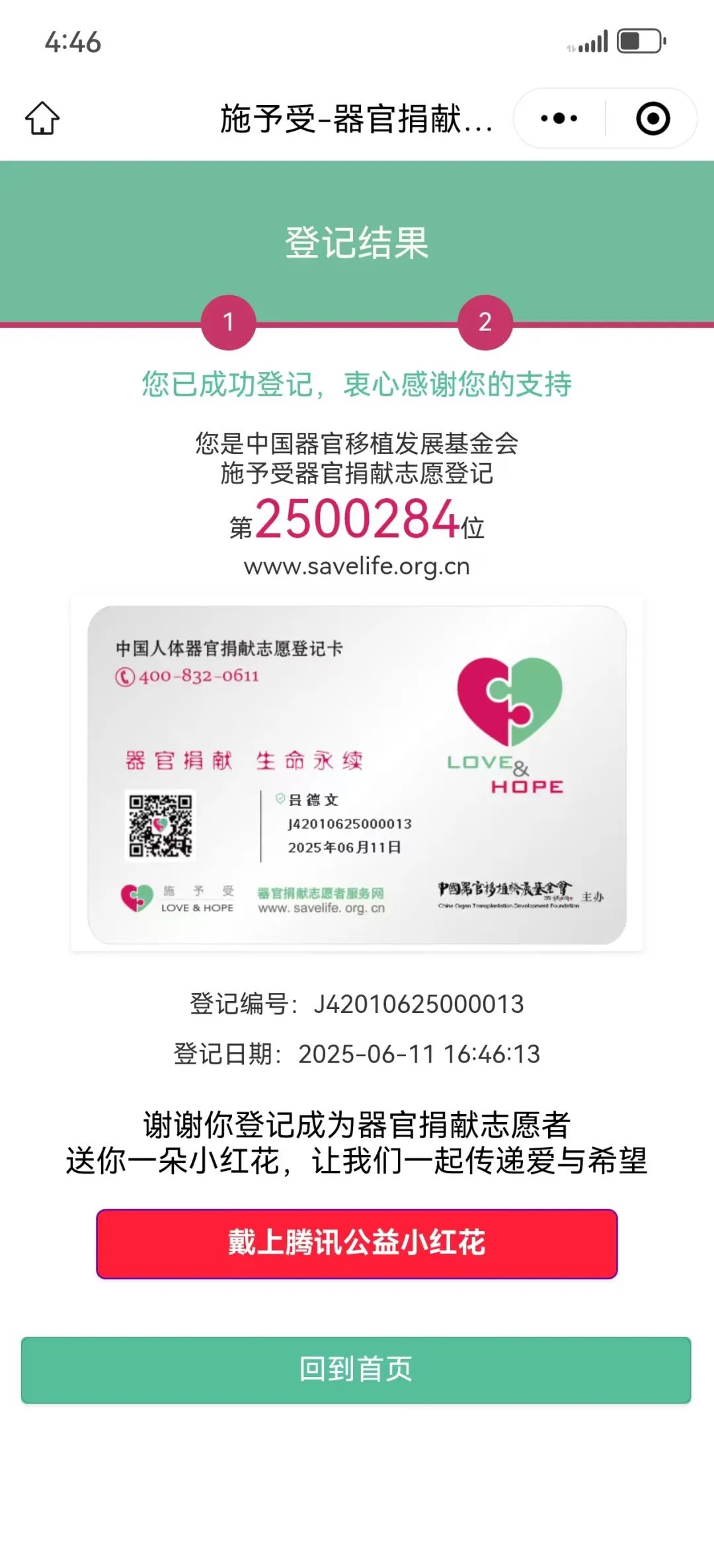 很幸運,我竟然最後得以重生,還有機會親自登記捐贈系統。