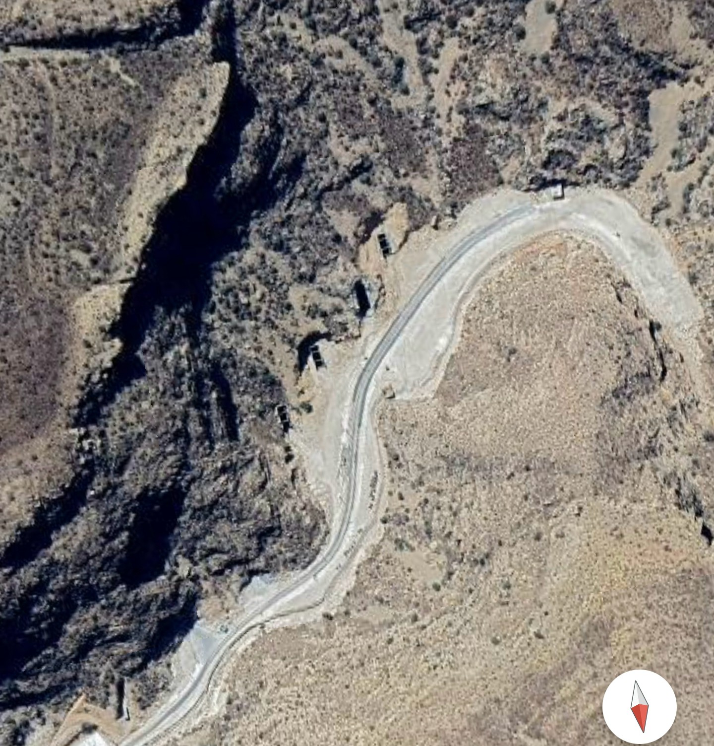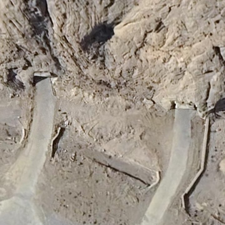 圖5和圖6是第二種掩體類型,直接開鑿山體並且把TEL發射車停在山體中,需要發射時開出山體發射。理論上來説,這種掩體的生存性強於第一種。但事實情況是通過間諜小組與空軍力量,以色列正在積極使用空軍和破壞小組獵殺開出洞窟的TEL發射車,導致導彈始終難以發射。而且由於伊朗防空力量的癱瘓,以色列現在可以使用長航時查打一體無人機完成這個任務。(圖7)