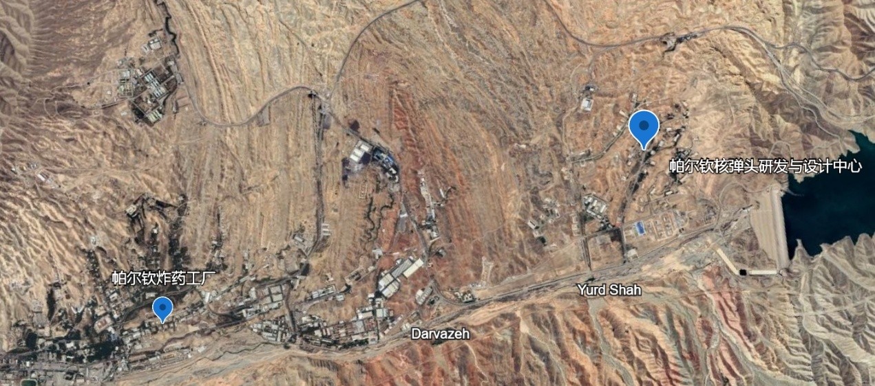 帕爾欽綜合體位於德黑蘭東北,完全由掩體組成。根據摩薩德披露的資料,帕爾欽綜合體有兩部分建築羣,其中西部為生產固體彈道導彈推進燃料的燃料工廠,西部為生產與設計核彈頭的工廠。