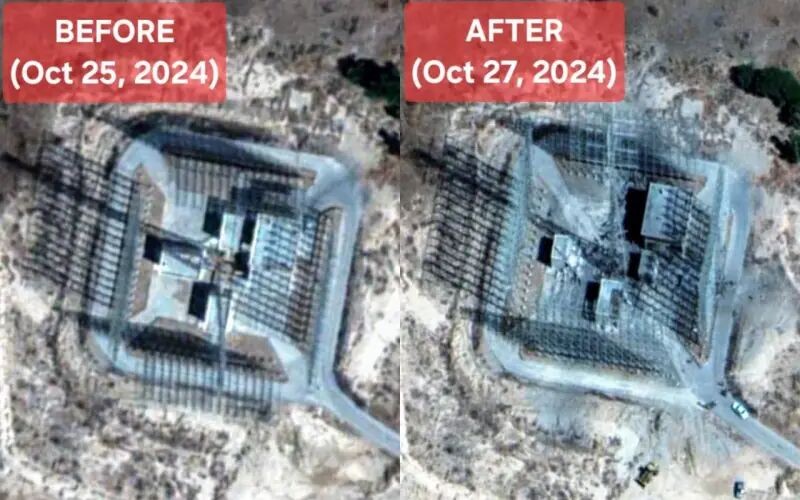 下圖是以色列麻雀彈道導彈打擊伊朗遠程預警雷達的效果。可以看到,該彈道導彈甚至無法摧毀任何一個天線陣面,只能炸燬一個與保安傳達室差不多大的雷達操作室。如此“感人”的打擊效果,加之沒有隱身戰機進行SEAD/DEAD作戰,使IAF戰機只敢縮在伊拉克和伊朗的邊境打空射彈道導彈或巡航彈,給了伊朗面對IAF的自信。