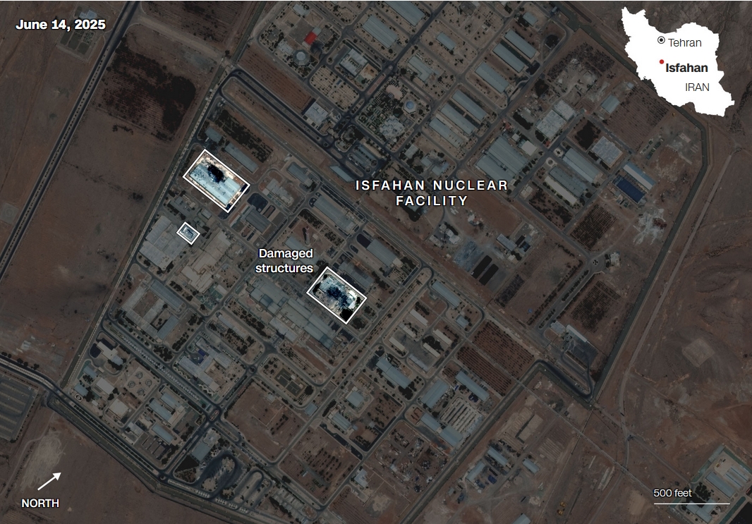 伊斯法罕核設施在襲擊後最初情況不明,IAEA在14日晚些時候才評估稱,伊斯法罕有四座“關鍵建築”受損。但CNN分析發現,在Maxar Technologies所提供的14日衞星圖像中,只能明顯看到有三座建築受損,第四處破壞尚無法確認。