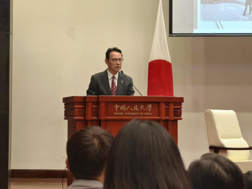 首先,我想衷心表示感謝,能有機會與先前其他國家駐華大使同僚一樣,在中國人民大學重陽金融研究院(人大重陽)區域國別論壇之“大使講壇”上發表演講,也很榮幸來到中國人民大學這所久負盛名的中國頂尖高校。事實上,日本駐華使館的一些日本同事就曾在中國人民大學學習,他們今天也在現場,併為自己是中國人民大學的校友而感到自豪。