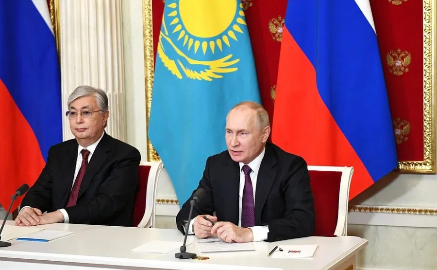 哈薩克總統託卡耶夫(左)和俄羅斯總統普京 克里姆林宮官網