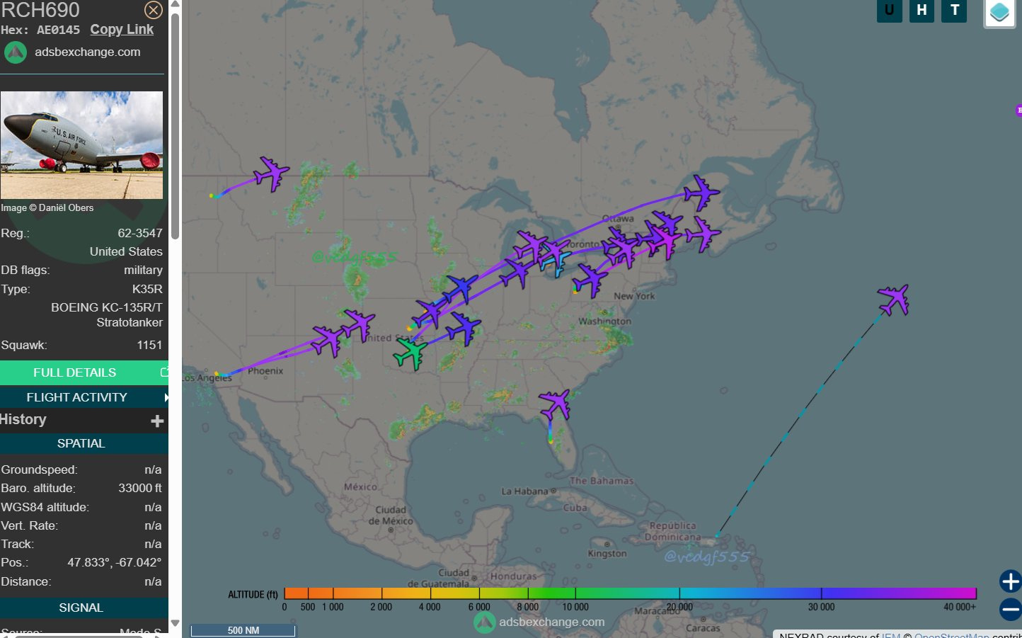 與此同時,開源航班信息軟件ADS-B EX數據顯示,目前美國本土至少有21架加油機向歐洲方向飛行,其最終目的也會是支援中東方向的美軍部署。