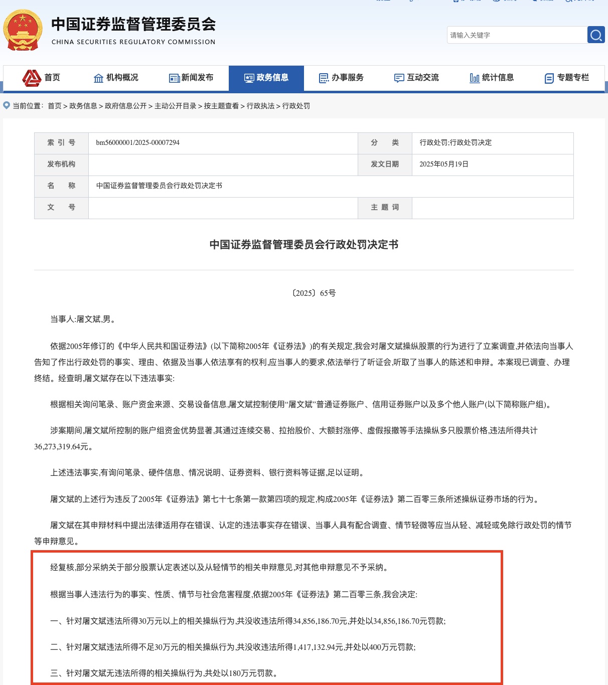 寧波牛散屠文斌操縱市場遭重罰!7700萬天價罰單落地