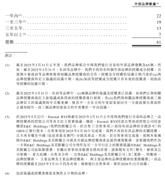 而在穎通的61個外部品牌中,有22個品牌的合約將在一年內到期,19個品牌在一至三年內到期,五年以上的品牌僅有7個。“倘若我們無法與提供貨源的該品牌授權商取得合作,則它對我們的產品供應可能會中斷。我們也可能因為和該品牌授權商之間的分歧而面臨訴訟風險。”穎通控股在招股書中表示。