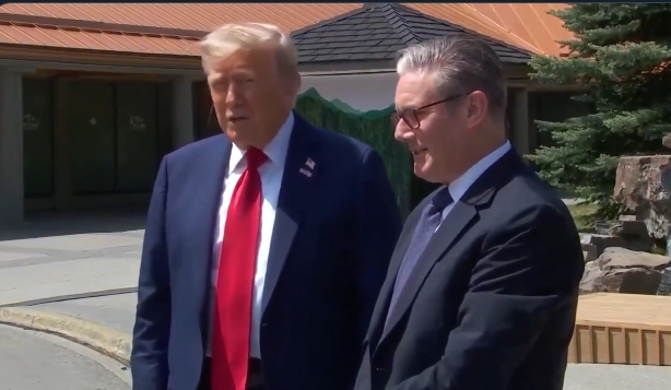 特朗普16日出席G7峯會,與英首相斯塔默會談 白宮視頻截圖