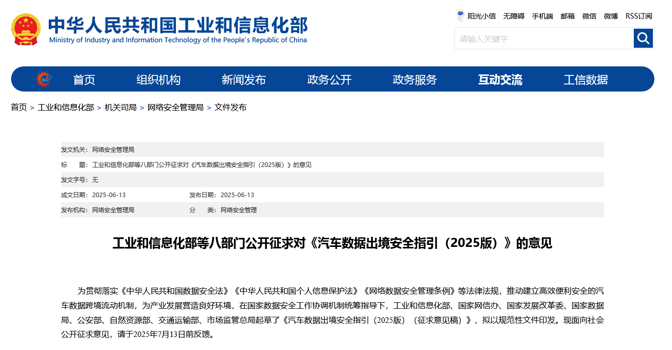 八部門就《汽車數據出境安全指引(2025版)》公開徵求意見