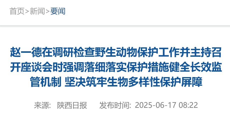 《人民日報》曝光問題後,陝西省委書記調研檢查野生動物保護工作